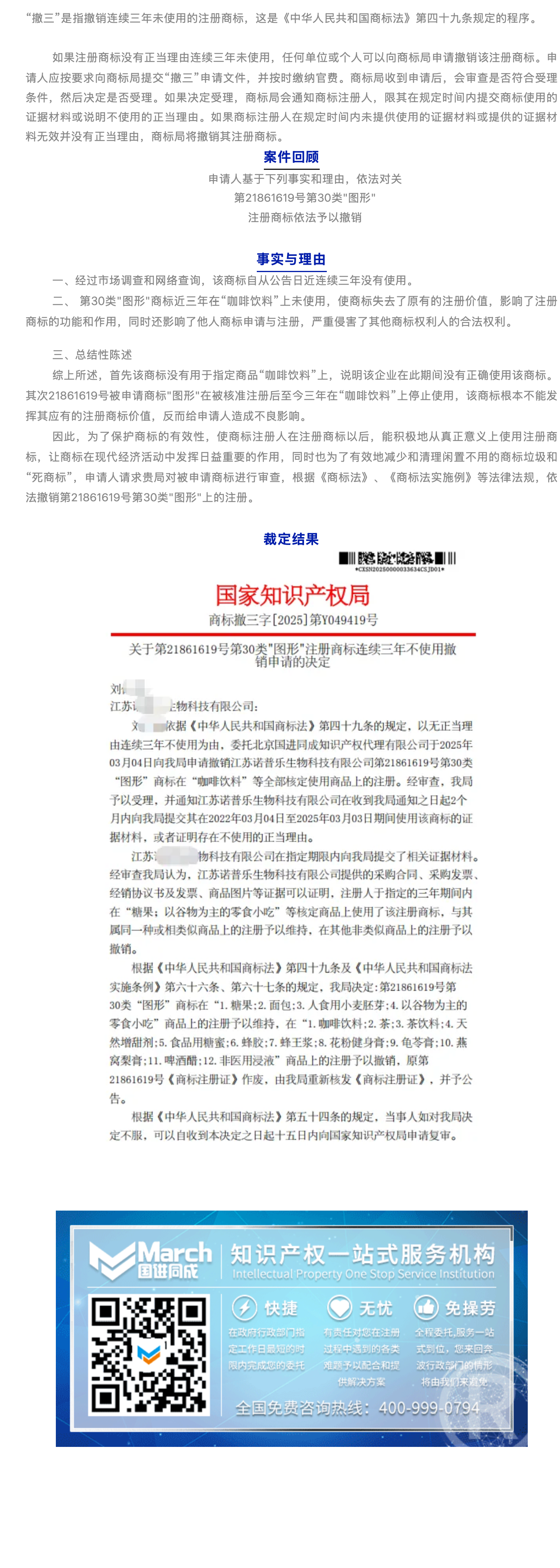 国进同成成功案例︱关于第21861619号第30类"图形"注册商标连续三年不使用撤销申请的决定