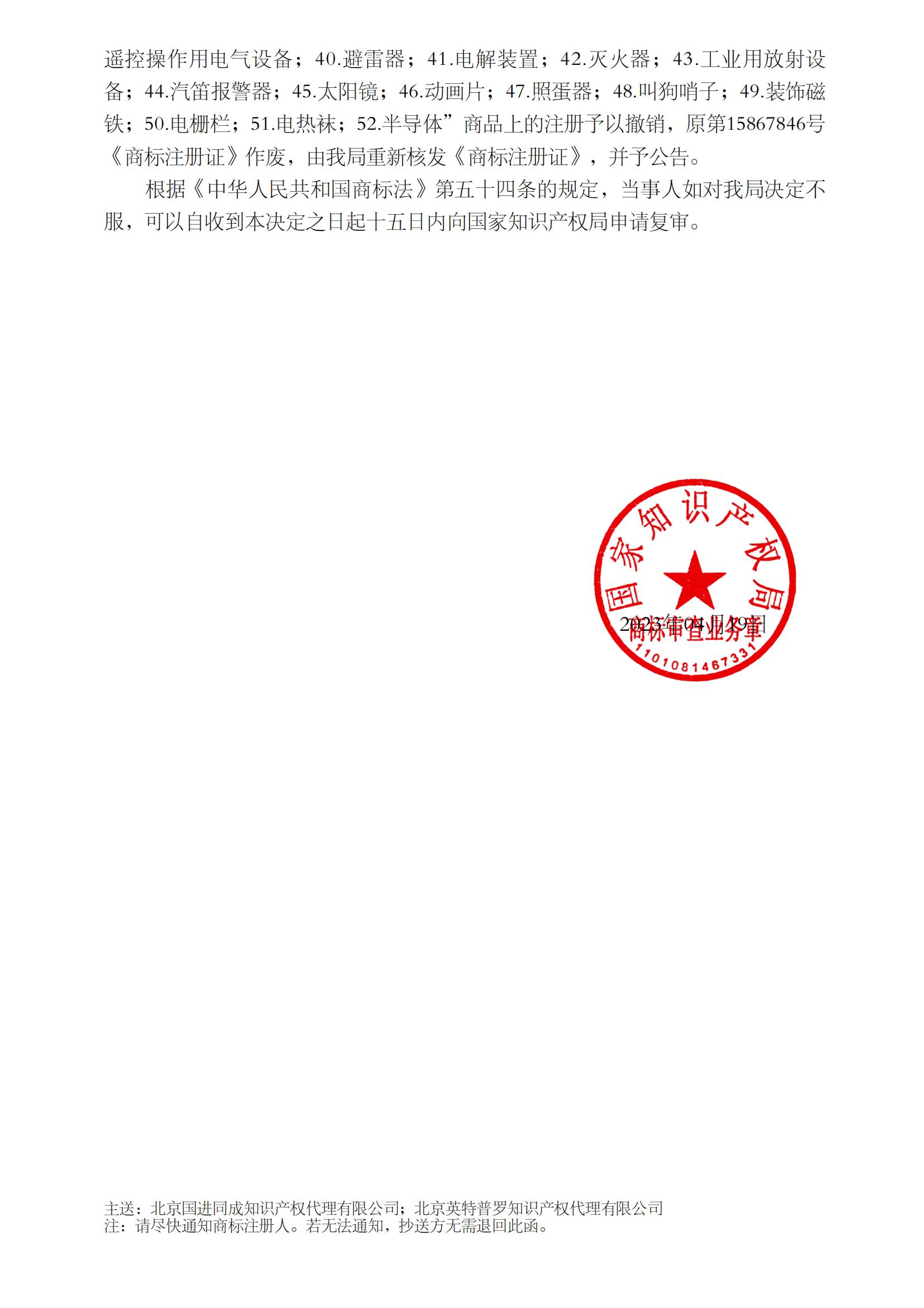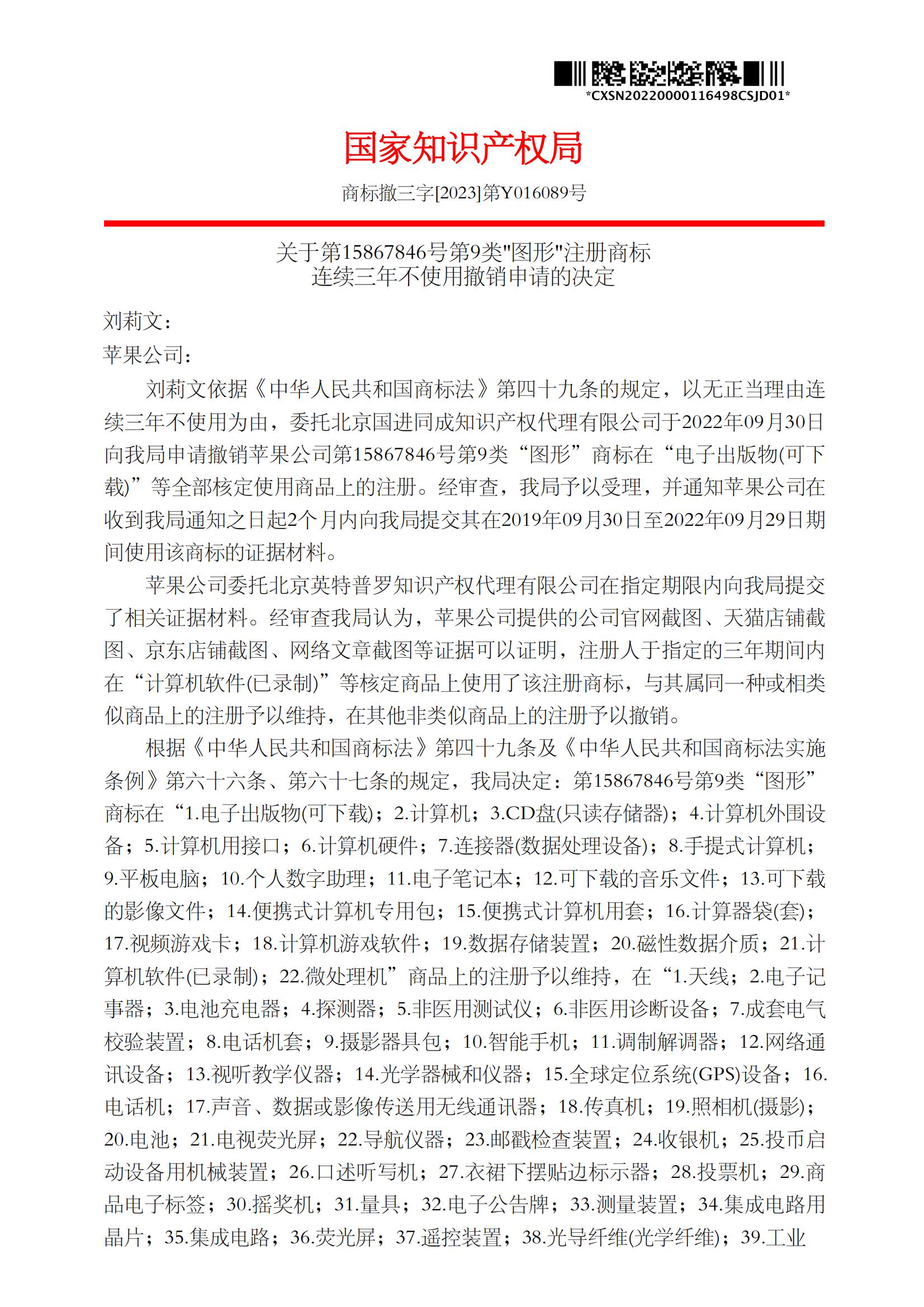 关于第15867846号第9类"图形"注册商标 连续三年不使用撤销申请的决定